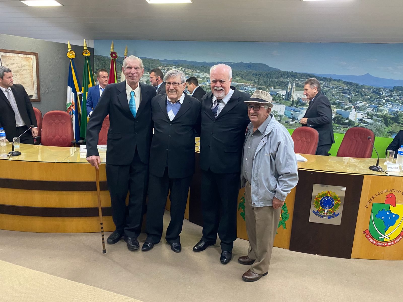 Na sessão, três ex-vereadores estiveram presentes, Guilherme Vogel, Lothar Wachholz Junior, Teobaldo Menel. O ex-vice-prefeito Lino João Dell’Antonio também compareceu e fez o uso da palavra em nome de todos os homenageados. “Nós como políticos e homens públicos temos muita responsabilidade, porque o povo às vezes espera milagres e às vezes eles não chegam. Lembremo-nos que somos passageiros e nossa alma é eterna, a nossa consciência é a alma, é a nossa mente, temos que buscar na política o correto, agir com ética”, declarou.