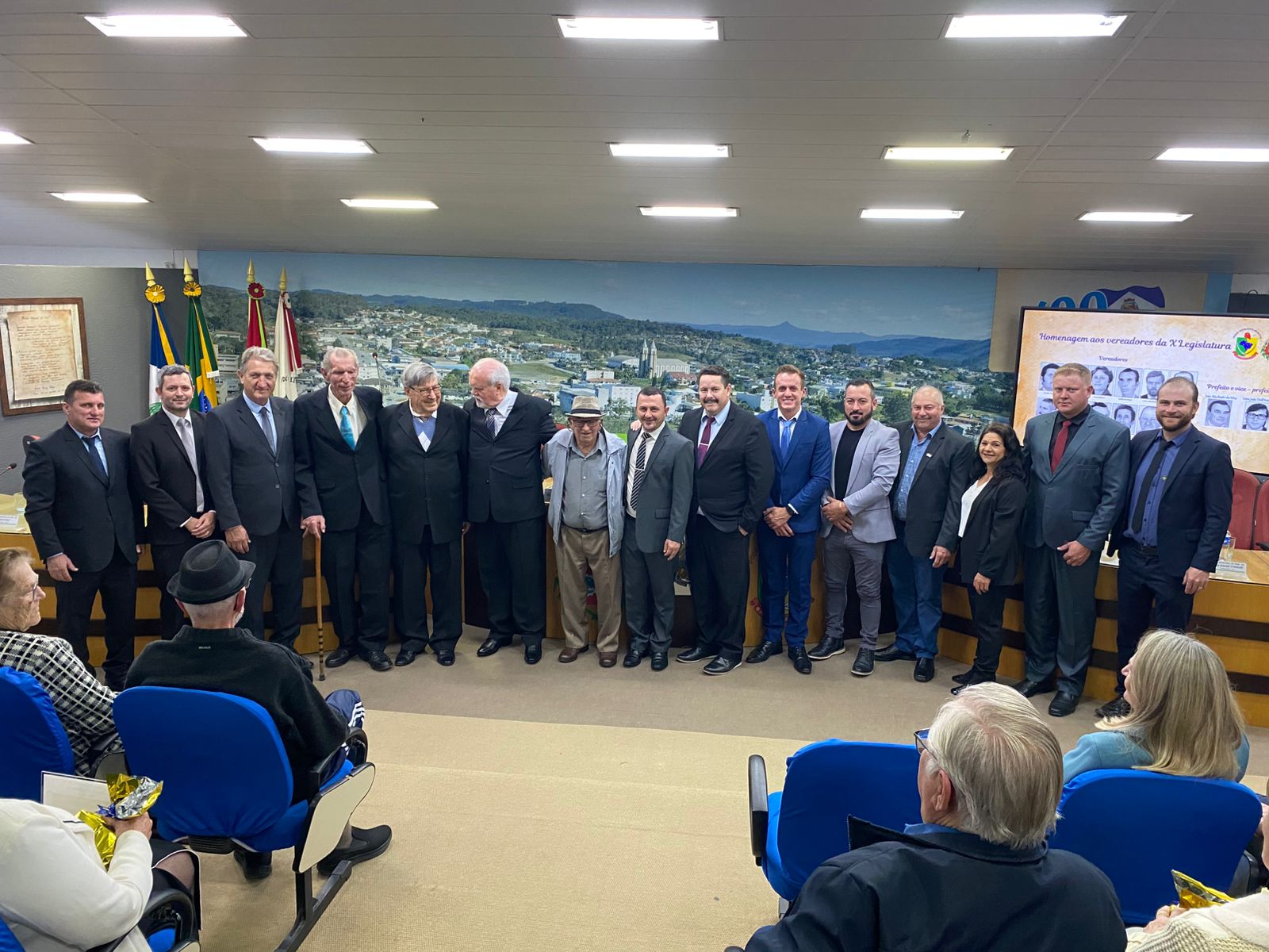 Esta foi a primeira sessão de homenagens para as legislaturas anteriores, que contou com representantes, ou familiares de todos os ex-vereadores. “Que nós da 20ª legislatura possamos deixar marcas assim como a 10ª legislatura deixou, que estejamos à frente do nosso tempo, buscando soluções inteligentes e democráticas para o nosso município”, destacou o presidente da Câmara, Jaci de Liz.
