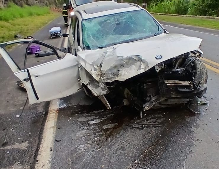 De acordo com as primeiras informações, o condutor de uma BMW perdeu o controle da direção e colidiu violentamente contra um paredão às margens da rodovia.