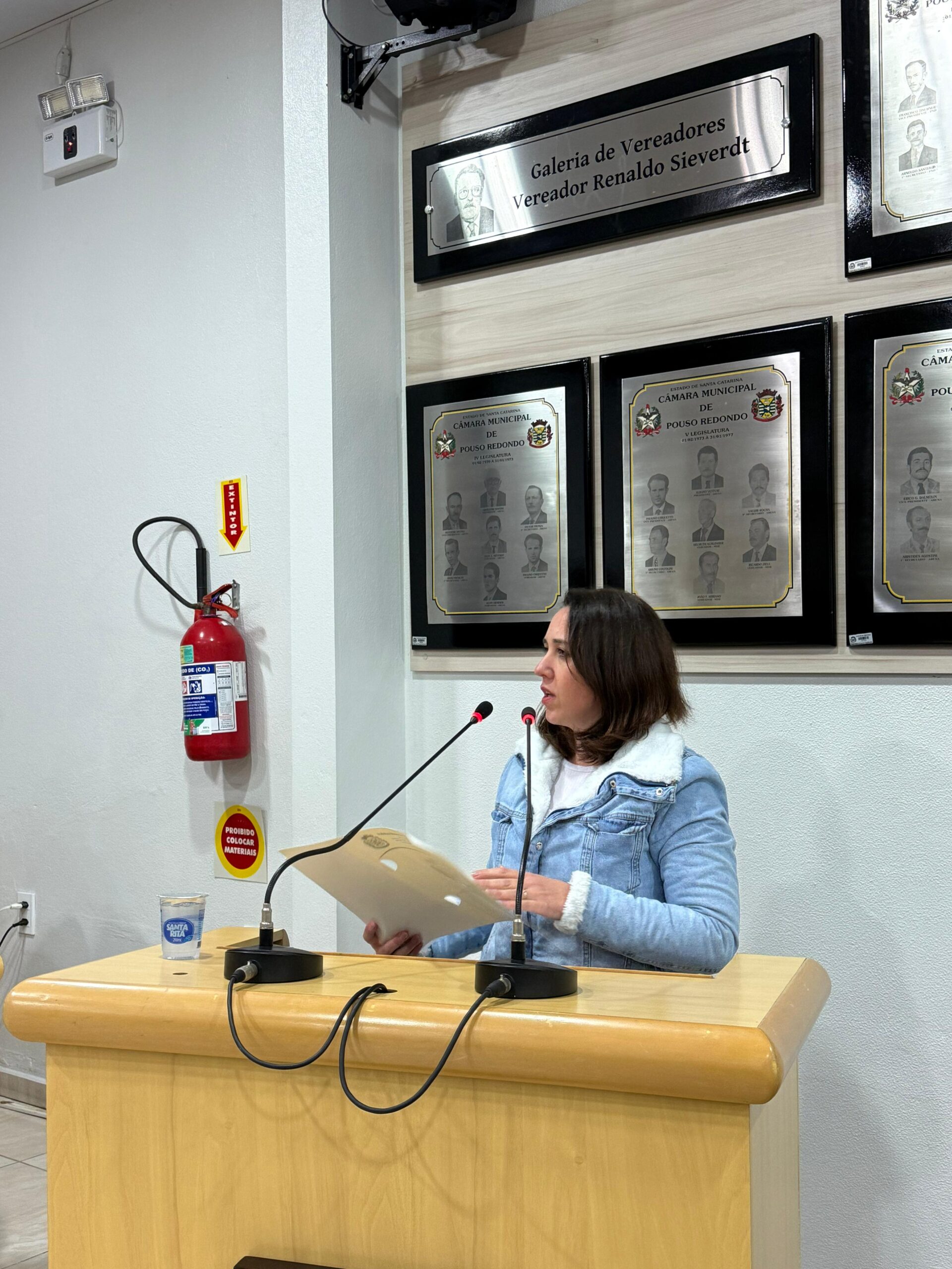 A sessão contou ainda com a participação da senhora Helen Schultz Vargas, que utilizou a Tribuna Livre para esclarecer o Projeto de Lei nº 020/2025. A proposta institui o programa “Bolsa Primeiro Emprego”, destinado aos alunos do ensino médio da rede pública que concluírem cursos de qualificação profissional.
