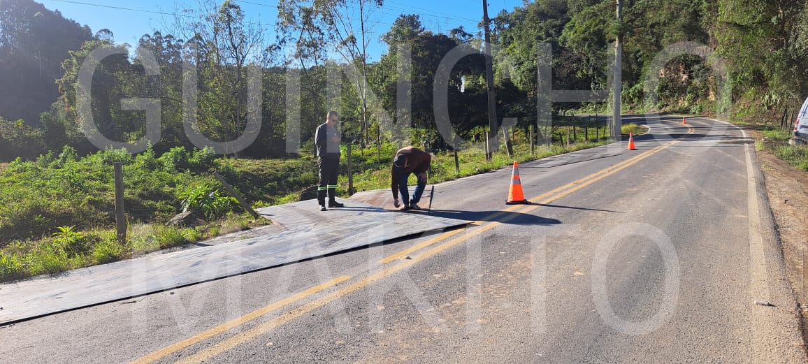 A Polícia Rodoviária Estadual (PRE) foi acionada e está a caminho para assumir a ocorrência e realizar os procedimentos necessários. As chapas de ferro espalhadas na pista exigiram atenção redobrada dos motoristas. O local foi sinalizado para garantir a segurança de quem trafega pela rodovia.
