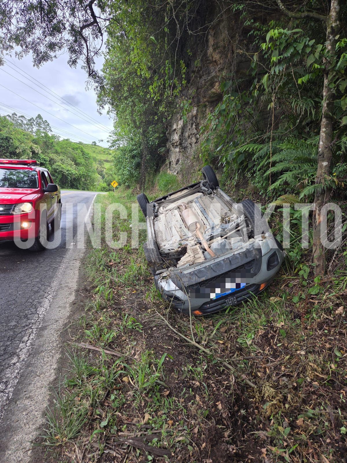 Um capotamento foi registrado na tarde desta segunda-feira (17) na SC-112, em Trombudo Central. No veículo estava apenas uma mulher, que não sofreu ferimentos e conseguiu sair sem a necessidade de atendimento médico.