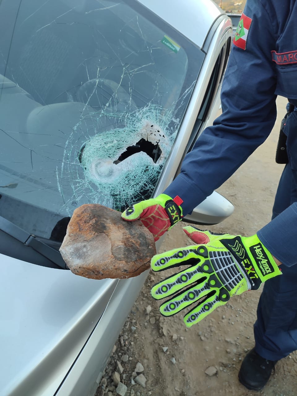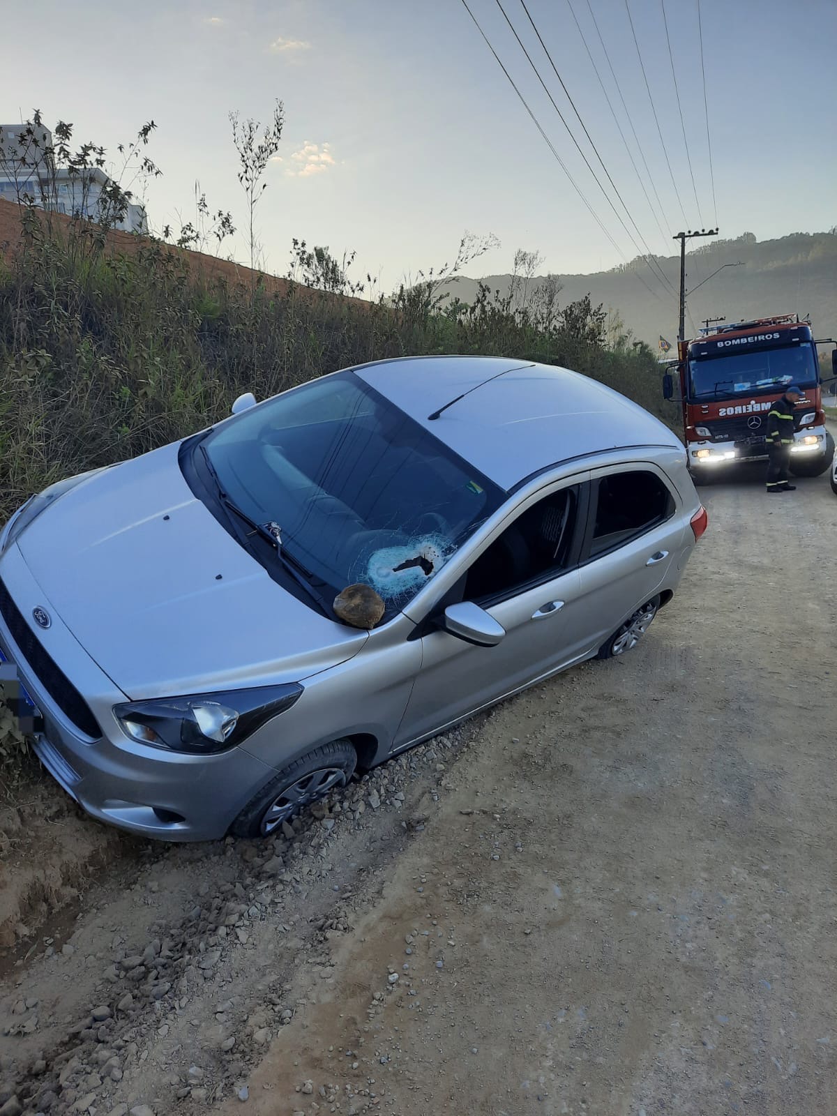 A motorista, de 29 anos, apresentava ferimentos na face e sangramento pelo ouvido (otorragia), após ter sido atingida por uma pedra que transfixou o para-brisa. Ela foi imobilizada em maca rígida e conduzida ao Hospital Regional Alto Vale.