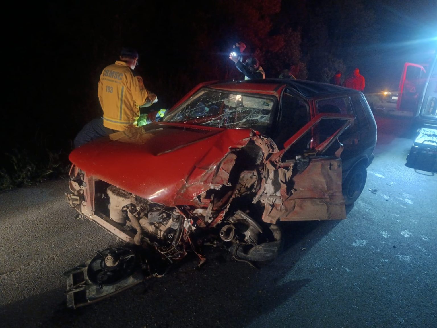 De acordo com os socorristas, o próprio motorista conseguiu sair do carro após perceber sangramento na cabeça e se deitou no chão à espera de ajuda. Um socorrista civil, que passava pelo local, prestou os primeiros cuidados antes da chegada da equipe de resgate, utilizando uma compressa improvisada para conter o sangramento e aplicando um colar cervical.