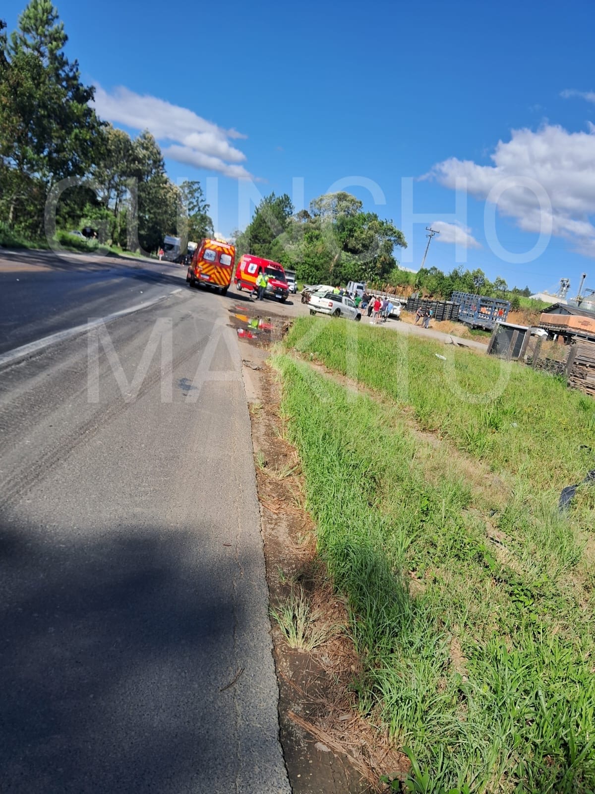 Um grave acidente foi registrado na tarde desta sexta-feira, 4, por volta das 14h45min, na BR-470, em Trombudo Central, próximo à divisa com Pouso Redondo. A colisão envolveu um veículo Volkswagen Fox, que era um táxi da cidade de Fraiburgo, e uma carreta.
