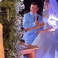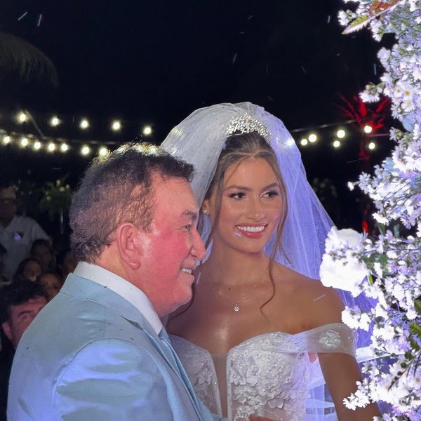 O evento reuniu familiares e amigos próximos, com muitos convidados chegando de jatinho e posando para fotos na pista de pouso da propriedade. A cerimônia começou por volta das 19h e foi registrada por diversas pessoas presentes.