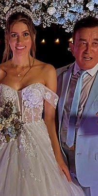 Após oficializarem a união no civil na última quinta-feira, o cantor Amado Batista, de 74 anos, e a miss Calita Franciele, de 23, realizaram uma grande celebração na noite de sábado (16) em sua fazenda, localizada em Cocalinho, no Mato Grosso.