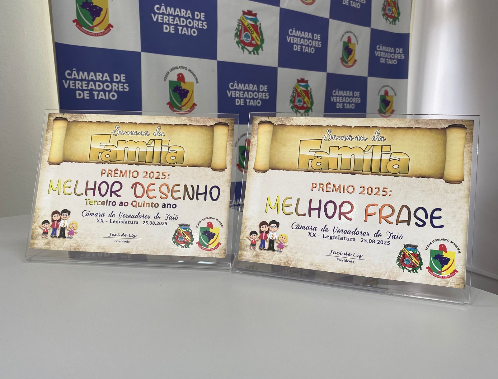 A frase e os desenhos que irão ilustrar a Semana da Família 2026 serão conhecidos na próxima segunda-feira (25). A votação para a escolha será realizada durante a 31ª sessão ordinária da Câmara de Vereadores de Taió. O concurso é realizado tradicionalmente em agosto, através de uma parceria entre o Legislativo e a Secretaria Municipal de Educação.