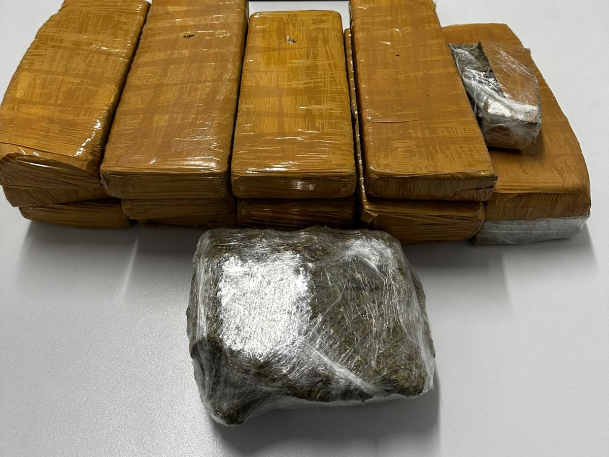 Dentro do carro, os policiais encontraram diversos tabletes de maconha e skunk — uma versão mais potente da droga — totalizando cerca de 10 quilos de entorpecentes.