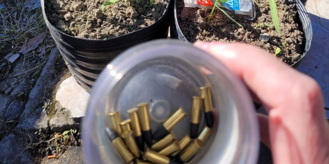 A ação ocorreu durante uma operação para cumprir um mandado de busca e apreensão, no âmbito de uma investigação sobre comércio ilegal de armas de fogo. A diligência foi realizada na Localidade Ribeirão Café, no interior do município, e resultou na apreensão de 16 munições calibre .22LR na residência do investigado.