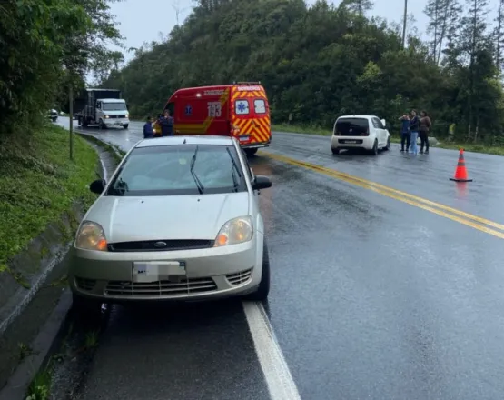 Na tarde deste domingo (22), uma colisão lateral deixou um idoso ferido na BR-470, em Pouso Redondo. O acidente ocorreu por volta das 14h05, no km 194, na região da Serra da Santa.