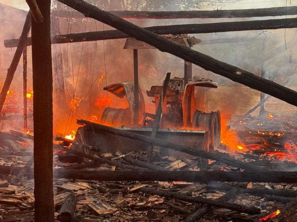 Incêndio destrói estufa de tabaco, galpão e trator em propriedade rural de Vitor Meireles