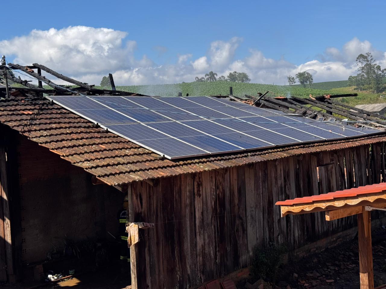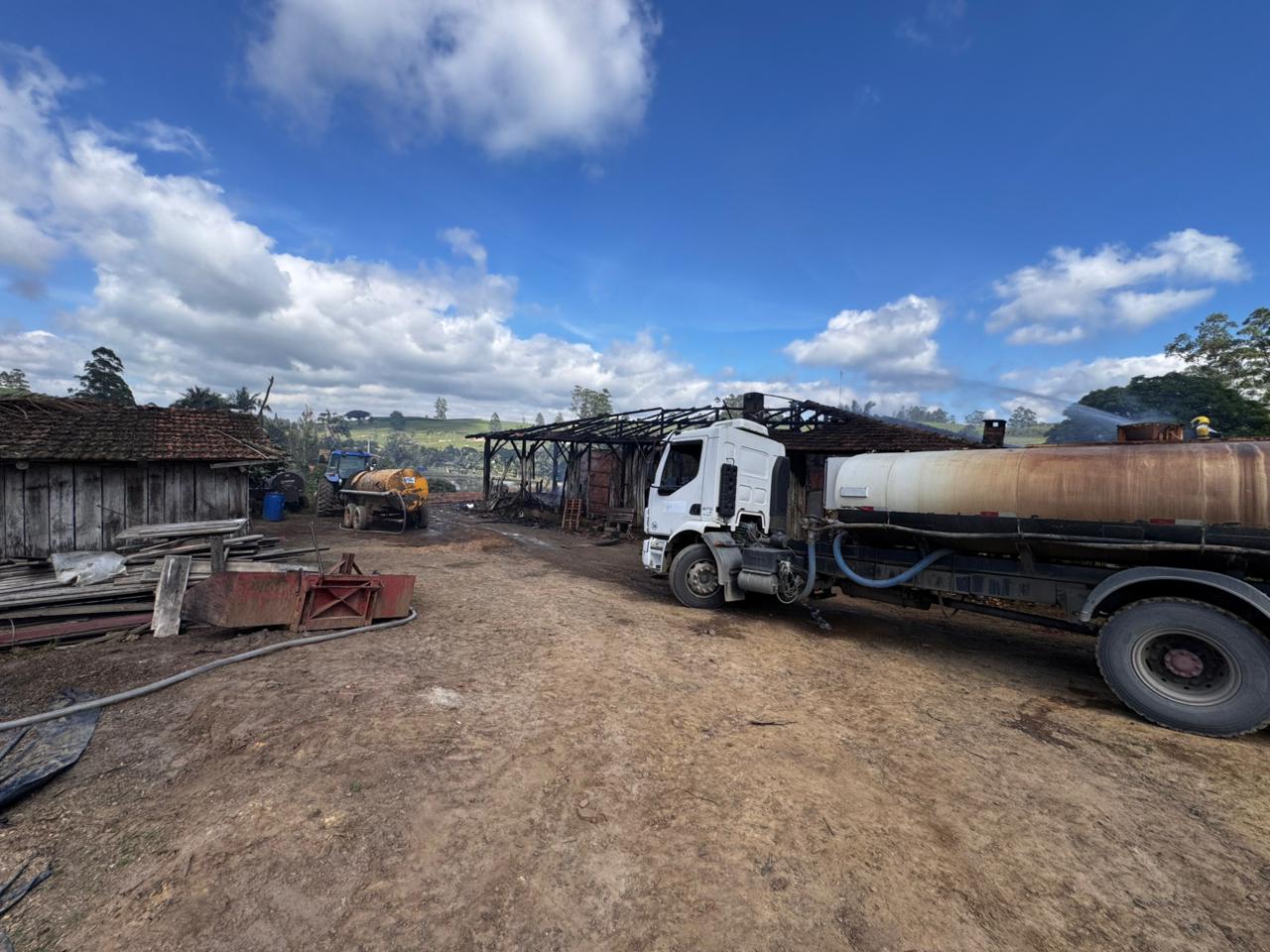 No galpão, diversos itens também foram totalmente destruídos, incluindo: uma motocicleta, uma carreta para trator, cerca de 100 sacos de milho, insumos agrícolas, 32 placas de energia solar, duas serras motor, roçadeiras, 120 litros de óleo diesel, 20 litros de gasolina e um motor reserva de estufa.