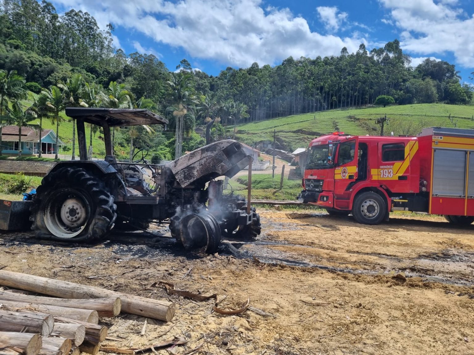 De acordo com o Corpo de Bombeiros, o proprietário, com ajuda de vizinhos, conseguiu retirar o trator em chamas para fora do galpão, o que evitou que o fogo se espalhasse e causasse destruição maior.