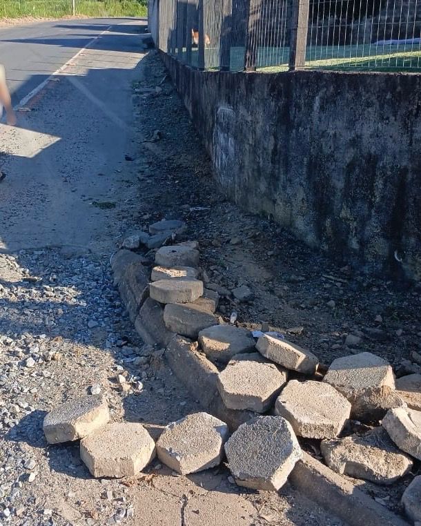 No local, os agentes encontraram um veículo parado sobre a via pública, com diversos danos. Segundo relatos de testemunhas, o condutor perdeu o controle da direção, colidiu contra um muro e também atingiu lajotas de concreto que estavam às margens da rua.