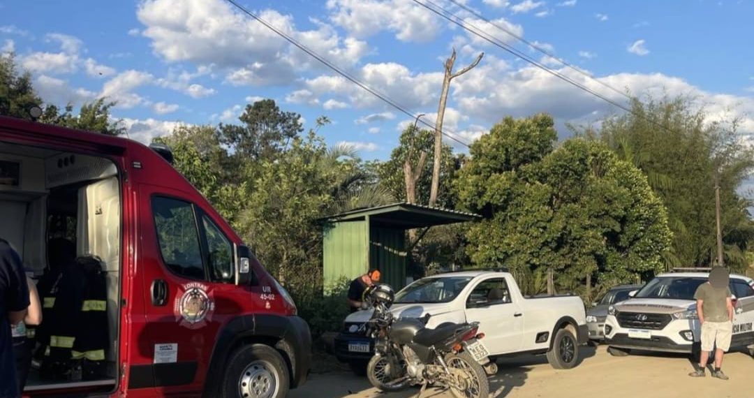 Uma mulher de 37 anos ficou ferida após uma colisão entre um carro e uma moto na manhã desta terça-feira (10), por volta das 9h30, na Rua Curt Hering, no Centro de Presidente Getúlio.