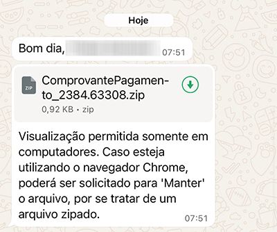 Um novo golpe vem sendo aplicado no WhatsApp e já preocupa especialistas em segurança digital. Criminosos estão enviando arquivos, geralmente em formato ZIP ou PDF, que contêm vírus capazes de dar acesso remoto ao celular da vítima. Ao abrir o arquivo, o usuário pode ter dados sensíveis expostos e até a conta clonada.