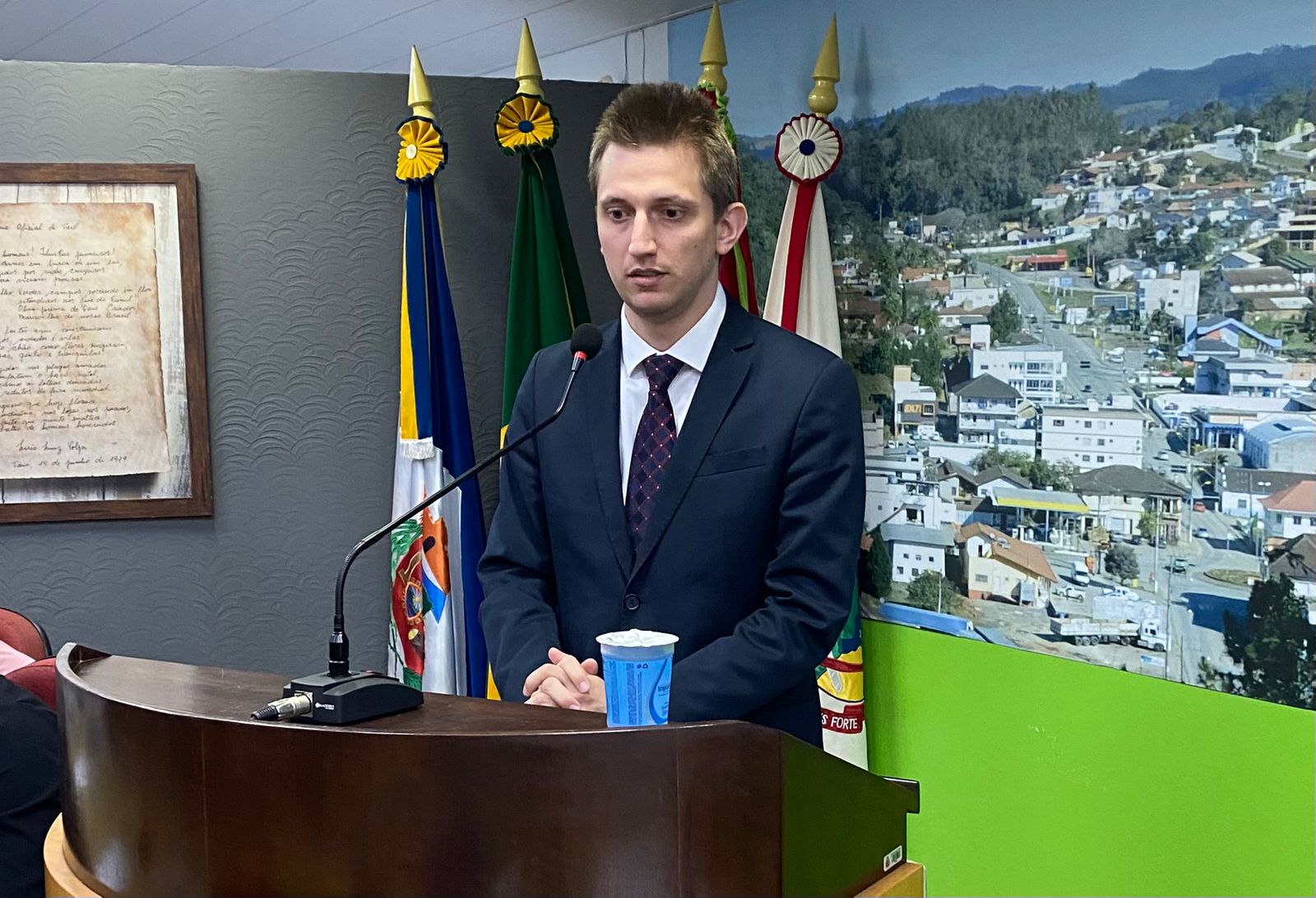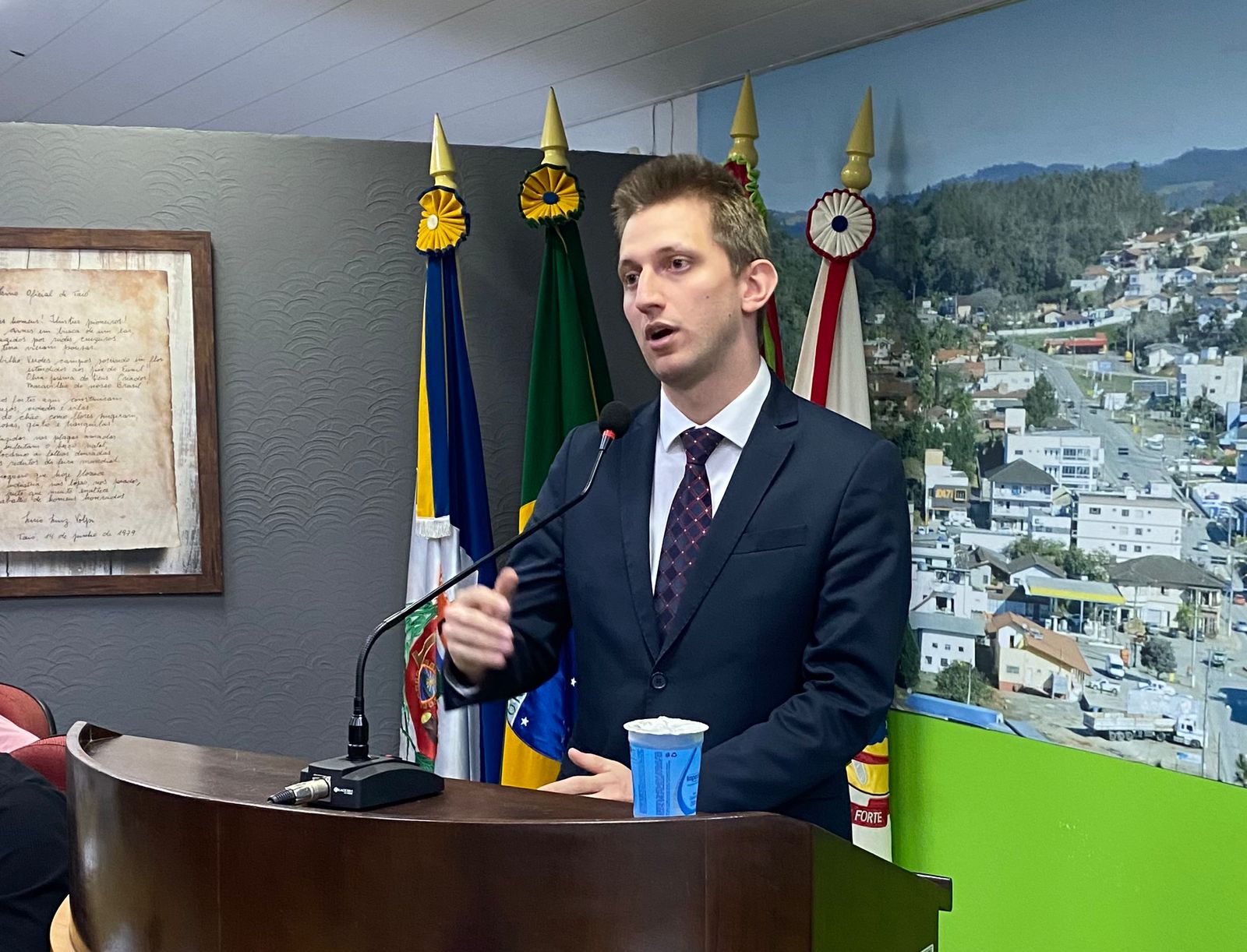 O novo juiz titular da Comarca de Taió, Dr. Victor Machado Schmitt participou da sessão ordinária da Câmara de Vereadores de Taió, realizada nesta segunda-feira (12). Convidado a fazer o uso da tribuna, o magistrado utilizou o espaço e o tempo cedido, para falar sobre o funcionamento dos trabalhos e também a reforma e ampliação do prédio do Fórum. A Vara Única da Comarca de Taió ficou sem um juiz titular por cerca de nove meses.