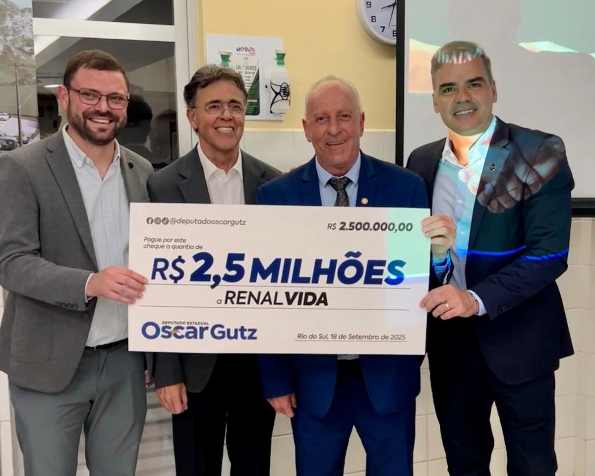 O deputado estadual Oscar Gutz (PL) anunciou o repasse de R$ 2,5 milhões que vai viabilizar o início da construção da nova sede da Renal Vida no Alto Vale, trazendo mais conforto e proximidade para centenas de pacientes renais da região.