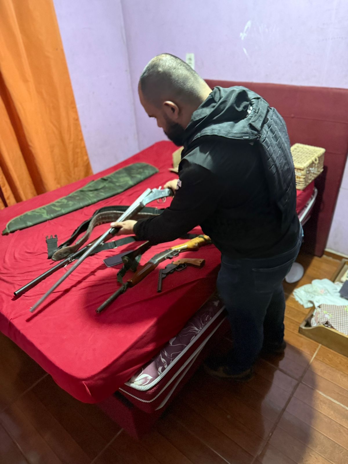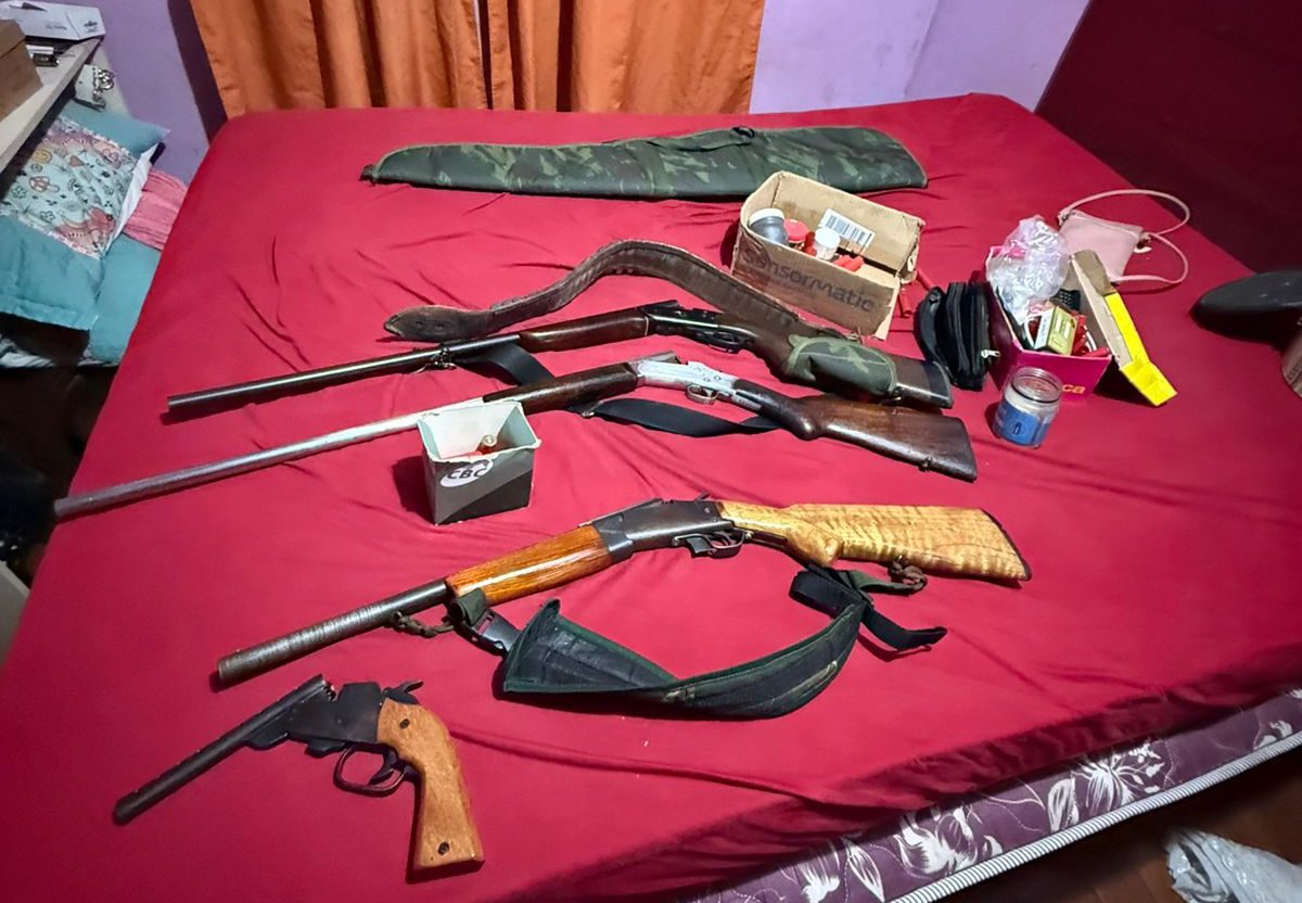 Durante a ação, foram apreendidas cinco armas de fogo de diferentes calibres e diversas munições. Entre elas, uma arma estava com a numeração suprimida e outra teve o calibre adulterado. Quatro das armas foram encontradas na residência do primeiro suspeito, de 49 anos, enquanto o segundo investigado, de 26 anos, foi detido em uma oficina próxima ao seu bairro, após a apreensão de uma arma e munições em sua residência.