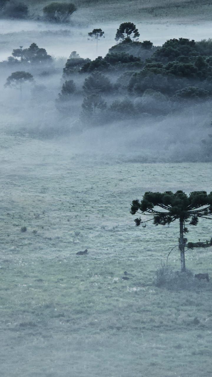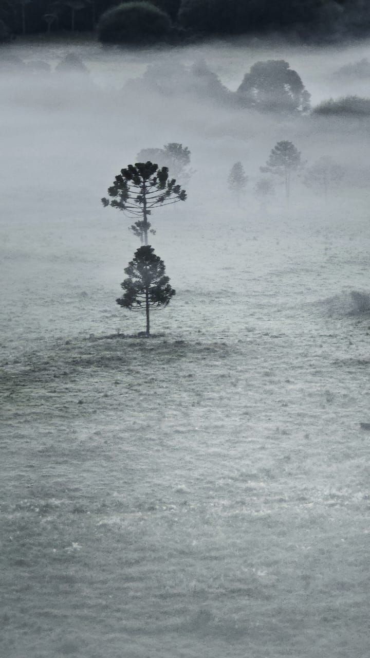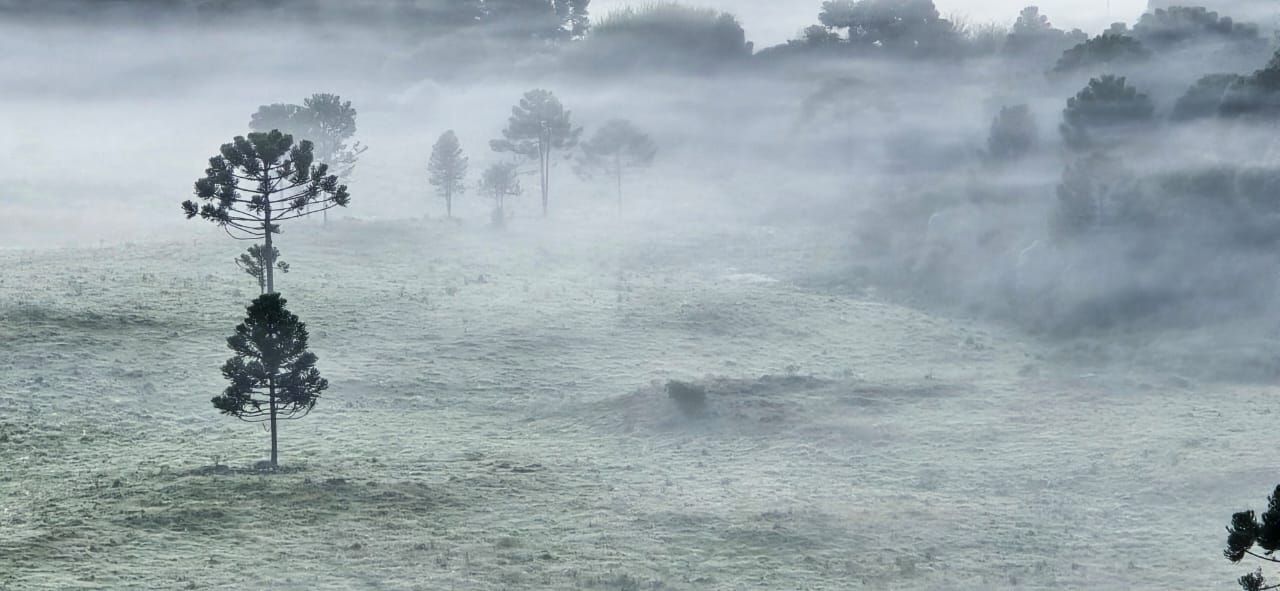 Com a temperatura mínima de 2,5°C na região, os campos ficaram cobertos por uma fina camada de gelo, criando uma paisagem típica do outono serrano. O registro marca o início do período de temperaturas mais baixas em Santa Catarina, reforçando a fama de São Joaquim como um dos destinos mais frios do Brasil.