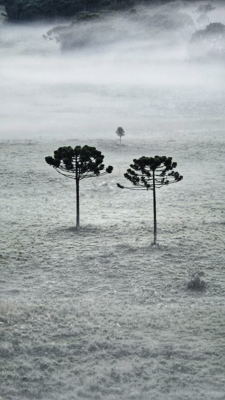 O amanhecer deste domingo, 16 de março, trouxe a primeira geada de 2025 em São Joaquim, na Serra Catarinense. O fenômeno foi registrado pelo fotojornalista Mycchel Legnaghi por volta das 5h50, no Vale do Caminhos da Neve, a cerca de 3 km do centro da cidade.