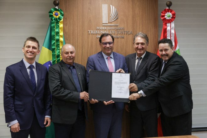 A cerimônia ocorreu nesta quarta-feira (28) na sede do Tribunal de Justiça de Santa Catarina (TJSC), em Florianópolis. Estiveram presentes o novo juiz titular da Comarca de Taió, Dr. Victor Machado Schmitt, o prefeito Aristides Elói Valentini (PSDB), o vice-prefeito Udo Gutz (PL), o presidente da Câmara de Vereadores, Jaci de Liz (PSD), e autoridades do Poder Judiciário Catarinense, incluindo o desembargador Francisco Oliveira Neto, presidente do TJSC.
