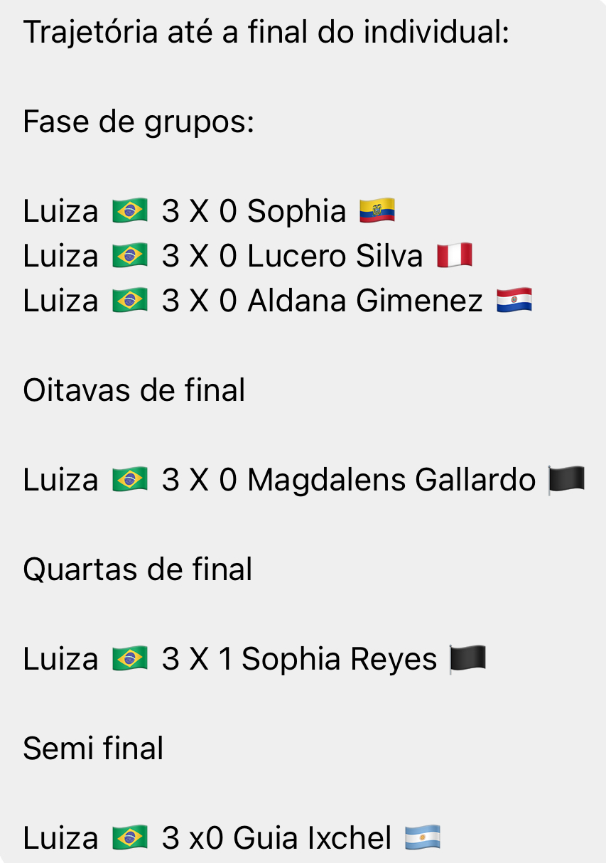 A atleta de Rio do Oeste, Luiza Fontanive, entra em quadra neste domingo (30) para disputar mais duas finais no torneio realizado em Cuenca, no Equador. Ela competirá nas categorias individual e duplas femininas, buscando mais conquistas para sua trajetória.