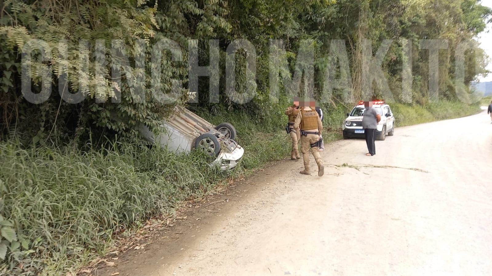 Na manhã deste domingo (9), equipes do Corpo de Bombeiros foram acionadas para atender a um capotamento de veículo na Alameda Trombudo Alto, no bairro Três Barras em Agrolândia.