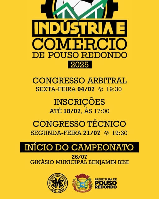 O Campeonato de Futsal de Indústria e Comércio 2025 já tem data marcada para começar em Pouso Redondo. A competição será realizada no Ginásio Municipal Benjamin Bini e promete movimentar atletas e empresas locais.