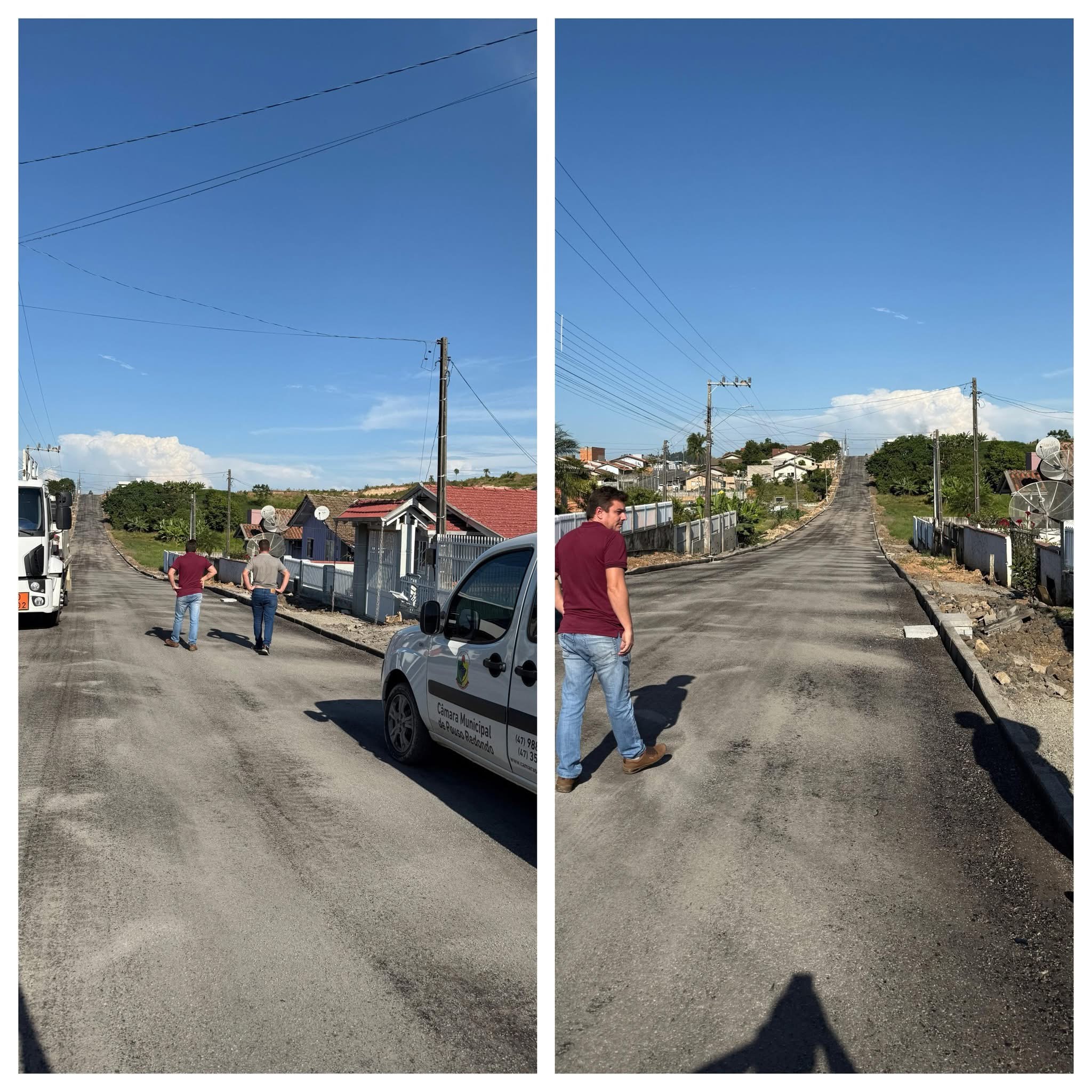Os vereadores percorreram trechos das ruas João Felício Adriano, Atílio Verdi, Itajaí, Irineu Bornhausen e Santa Catarina, onde as obras de pavimentação seguem em execução. O investimento tem como objetivo melhorar a infraestrutura viária, proporcionando mais segurança e qualidade de vida à população.
